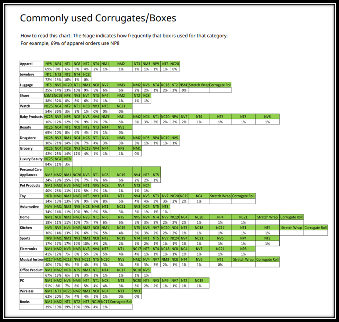Commonly used Corrugates/Boxes -