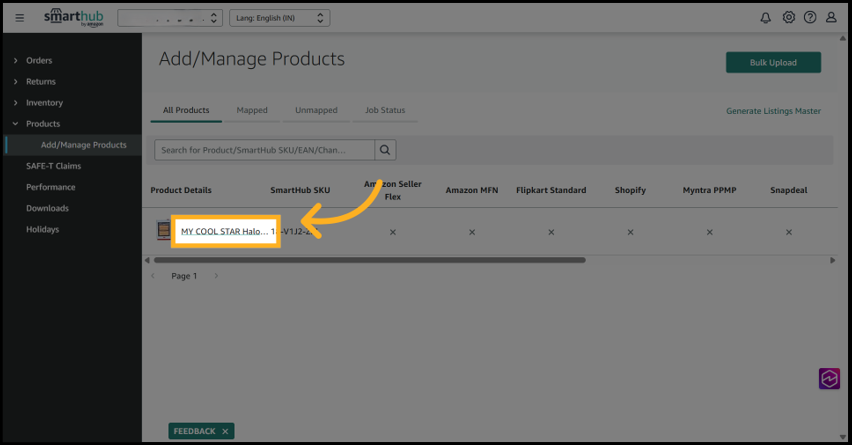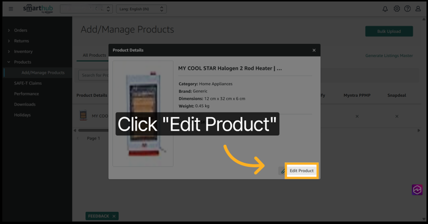 Here we are editing SmartHub SKU of a product and to do so, please follow the below steps:-