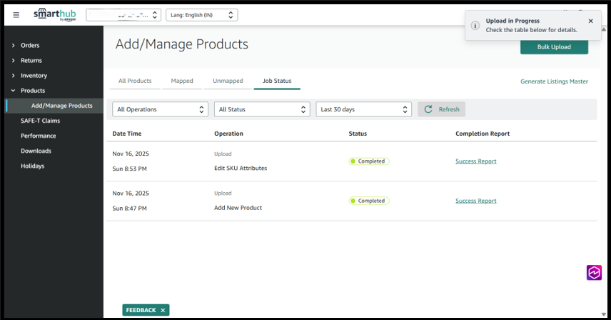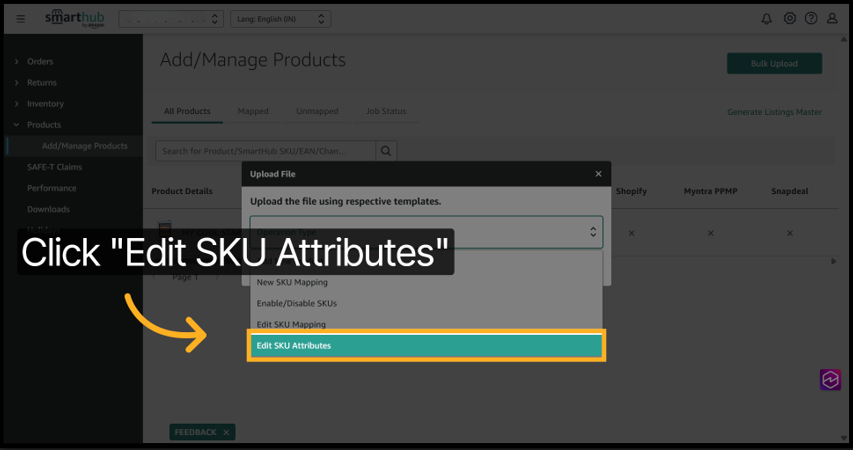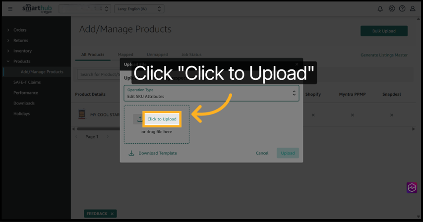 Keeping your product listings accurate is essential for maintaining customer trust and ensuring a smooth buying experience. This article will guide you on how to edit SKU attributes such as SmartHub SKU, Brand, Category, Product name, Dimensions, Weight & Product images efficiently using Amazon Smarthub bulk upload templates to update multiple products at once. These steps help you save time, avoid manual errors, and keep your catalog up to date across all channels.