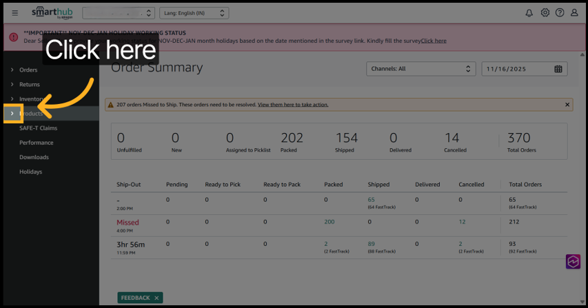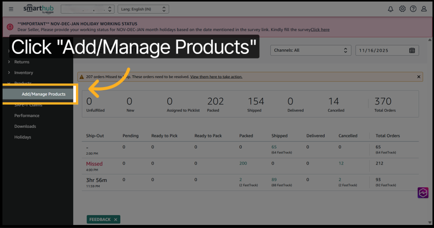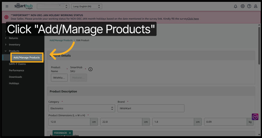 3. Click Add/Manage Products to begin managing your product listings.