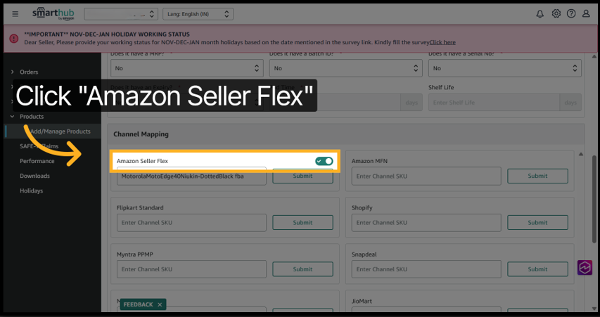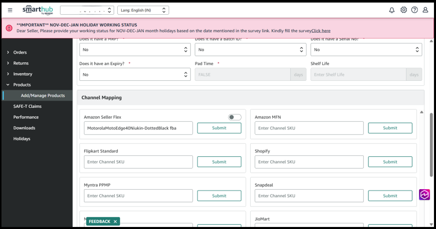 6. Here the product is mapped to Amazon Seller Flex channel and in other cases there may be multiple channels that a product is mapped to.