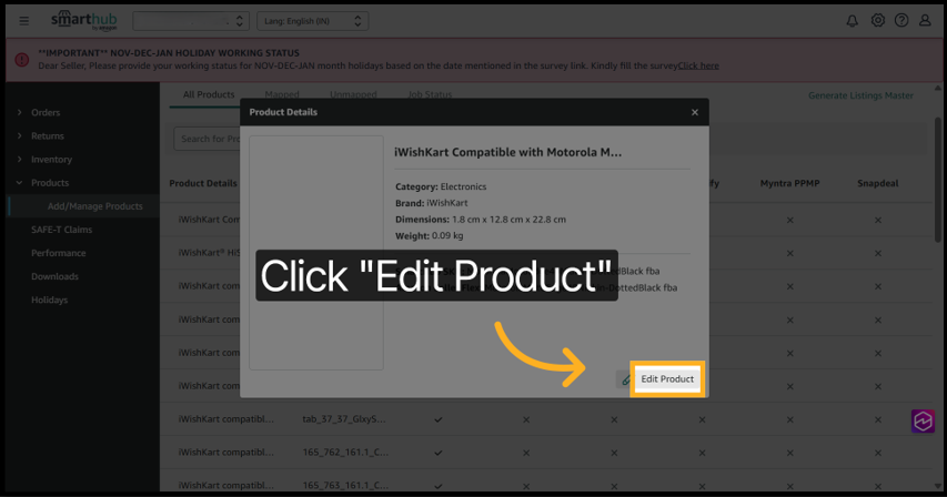 5. Click Edit Product to view channel-specific details